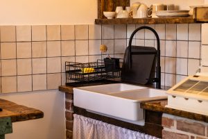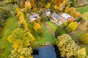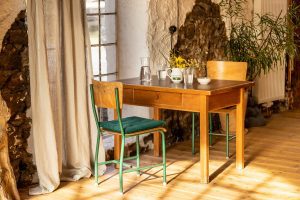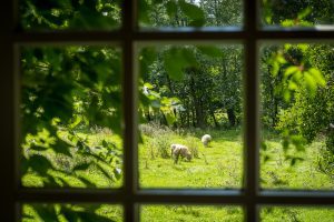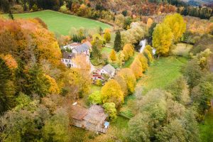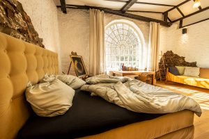 Ehemaliges Künstleratelier für Deine Auszeit. Ob allein oder zu zweit, hier kommst Du zur Ruhe. Über drei Jahrzehnte arbeitete ein bekannter Künstler in unserem Atelier, renoviert und dezent aufgehübscht dient es heute als Rückzugsort für Ruhesuchende aus aller Welt. Der Blick durch das große, originalgetreue Sprossenfenster bringt Dich ganz in’s Hier und Jetzt, öffnet den Raum für neue Ideen und Kreativität. Die freistehende Badewanne lädt zur Entschleunigung ein, dicke Holzdielen und der offene Kamin bringen auch an verregneten Nachmittagen Behaglichkeit und Wärme in die historischen Mauern. Ein Beistellbett für einen kleinen Gast können wir ebenfalls kostenfrei zur Verfügung stellen, bitte gebt uns dazu eine kurze Information vorab. In der kleinen Küche gibt es einen Herd mit zwei Kochplatten und einem kleinen Backofen, einen Kühlschrank sowie ausreichend Besteck, Geschirr und Kochutensilien. Kaffee und Tee sind immer da. Über vierbeinigen Besuch freuen wir uns, bringt Euren Hund gern mit, nur mit unseren Katzen sollte er sich vertragen. Außerdem gibt es Esel, Schafe, Hühner und was das Naturschutzgebiet sonst noch zu bieten hat. Eingebettet ins Rosental zwischen Römerwanderweg und Urft, umgeben von Wald und Heuwiesen befinden wir uns in einem echten Biotop der Vielfältigkeit von Flora und Fauna. In der Umgebung gibt es unzählige Wander- und Radwege jedweder Länge und Schwierigkeit, einige führen direkt an unserem Gut vorbei. Ein Natur-Badesee lädt mit seinem kristallklaren Wasser aus der Urft zum Schwimmen an heißen Sommertagen ein, die Temperatur ist deshalb allerdings – sagen wir nichts für Karibikurlauber. Zum Aufwärmen gibt es dafür eine Feuerstelle direkt vor dem Atelier die zum gemütlichen Lagerfeuer mit Stockbrot und Folienkartoffel einlädt. Das Atelier und der großzügige Vorgarten werden immer exklusiv vermietet, der Badesee und die angrenzenden Wiesen werden Euch und weiteren Gästen zur Verfügung gestellt. Auf WLAN und TV verzichten wir in unseren Ferienhäusern ganz bewusst. Mit ÖPNV sind wir gut zu erreichen. Der RE22 fährt stündlich von Köln in die Eifel. Vom Bahnhof Urft (Steinfeld) seid Ihr in 10min zu Fuß bei uns. Bettwäsche und Handtücher sind im Preis inbegriffen.
