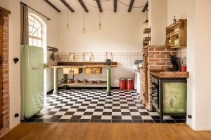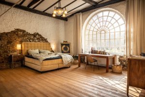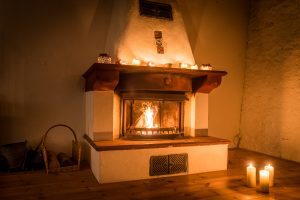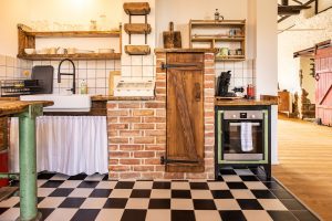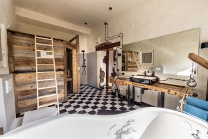 Romantisches Domizil auf Gut Neuwerk mit Bett vor dem offenen Kamin, freistehender Badewanne (keine Dusche) und Frühstücksküche mit Blick ins Grüne. Ein Wochenenderlebnis mit rustikaler Kreativität für Individualisten.