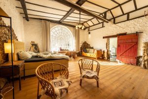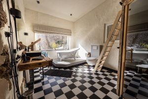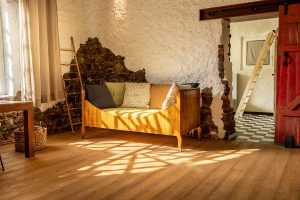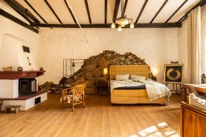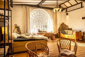 Die hier angebotene Unterkunft war über drei Jahrzehnte das Atelier eines bekannten Künstlers und ist nun zum romantischen Feriendomizil umgebaut worden. Dicke Holzdielen, der offene Kamin und die freistehende Badewanne unterstreichen den romantisch, ursprünglichen Charme.